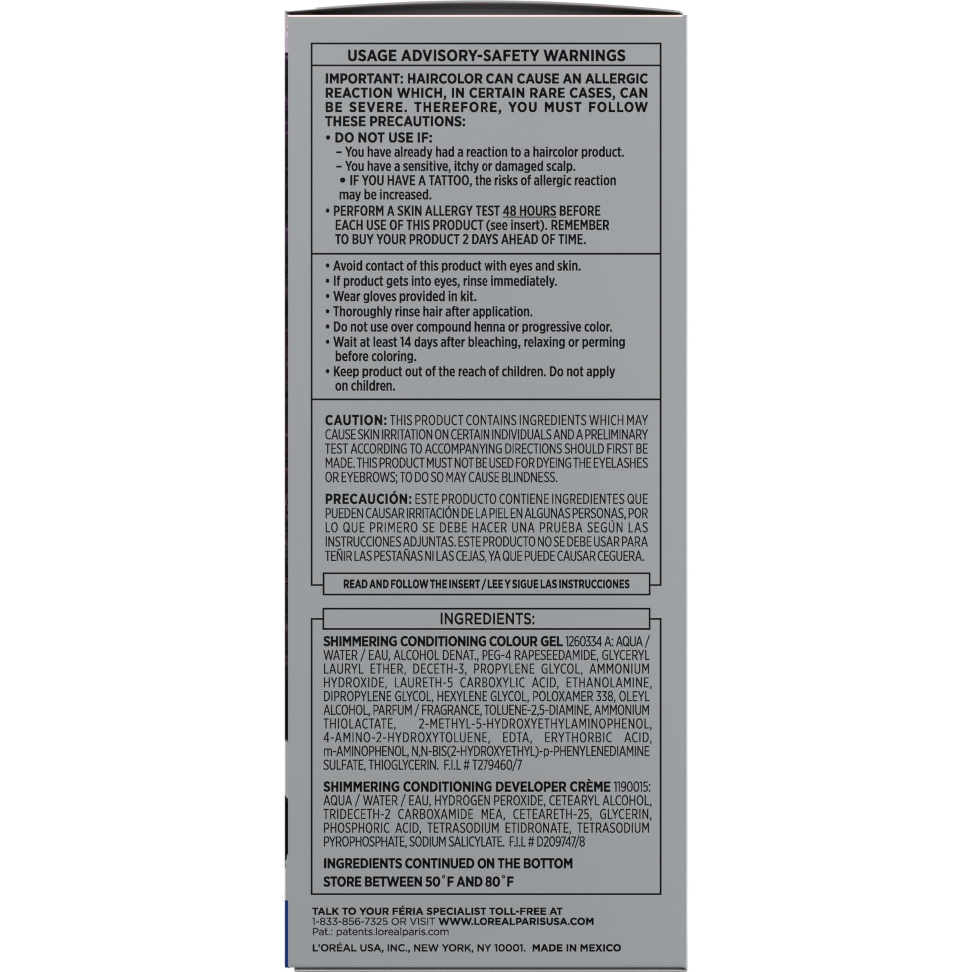L'Oreal Paris Feria Midnight Bold Multi-Faceted Permanent Hair Dye, One-Step Hair Color Kit for Dark Hair, No Bleach Required, Violet EclipseShimmering Hair Dye For Dark Hair: Feria Hair Color has been custom-blended by our master colorists. This multi-faceted shimmering violet hair dye with 4X highlights transforms dark hair in 1 step to high impact, vibrant color with no bleaching requiredHair Dye Kit Contains: Vibrant Permanent Hair Color Gel, Shimmering Conditioning Developer Crème, Aromatic Shimmer Serum and our Bonding Care Complex Conditioner to seal and smooth hairBold Permanent Hair Dye Shades: Inspired by cutting-edge fashion and the latest trends, Feria offers multi-tonal, shimmering hair color that comes in bold shades ranging from deepest blue blacks to platinum blondes to smokey silversL'Oreal Paris Hair Color: We offer permanent, semi-permanent, and temporary hair dye plus root cover up, anti-brass toners and lightening systems. Cover gray hair, highlight, go bold with bright color or even try an ombre hair colorL'Oreal Paris Innovation: We are a total beauty care company that combines the latest in technology with the highest in quality for the ultimate in hair color, hair care, hair style, skin care and cosmetics