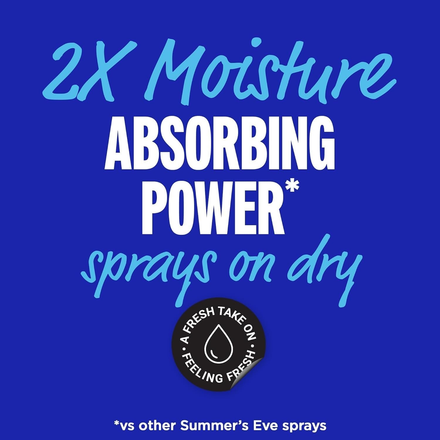Summer’s Eve Feminine Spray for Odor Protection has two times the moisture absorbing power** for lasting freshness; **vs. Summer’s Eve sprays