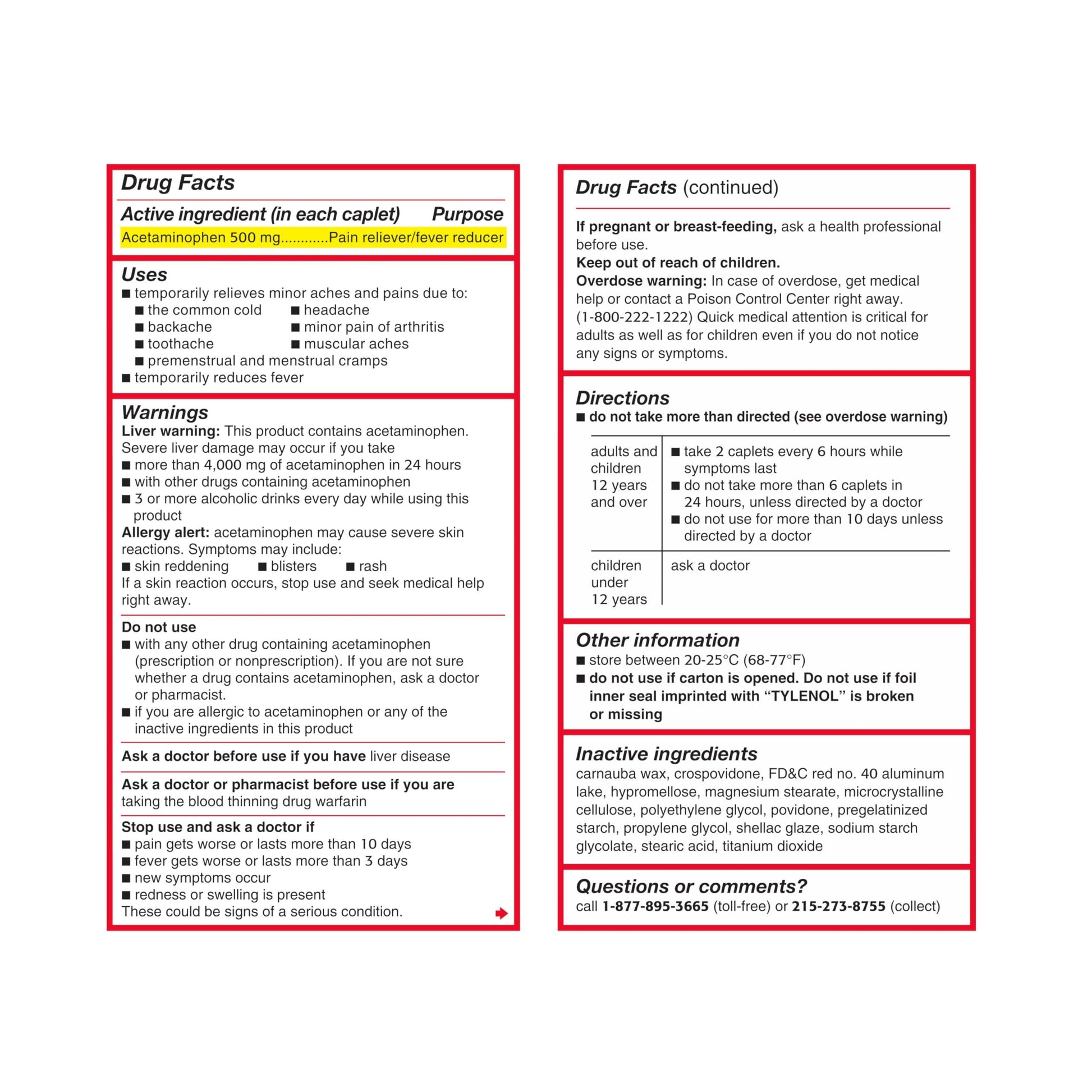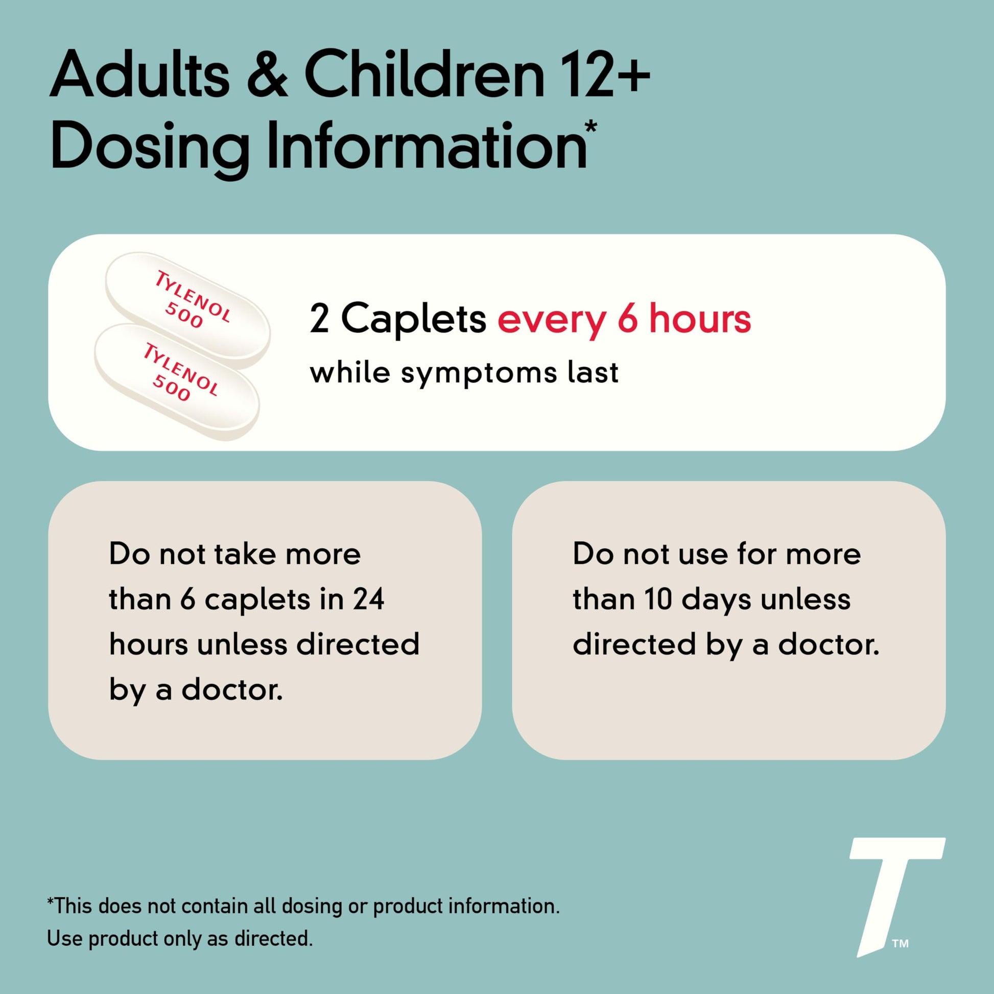 Tylenol Extra Strength Pain Reliever and Fever Reducer Caplets, 500 mg Acetaminophen Pain Relief Pills for Headache, Backache