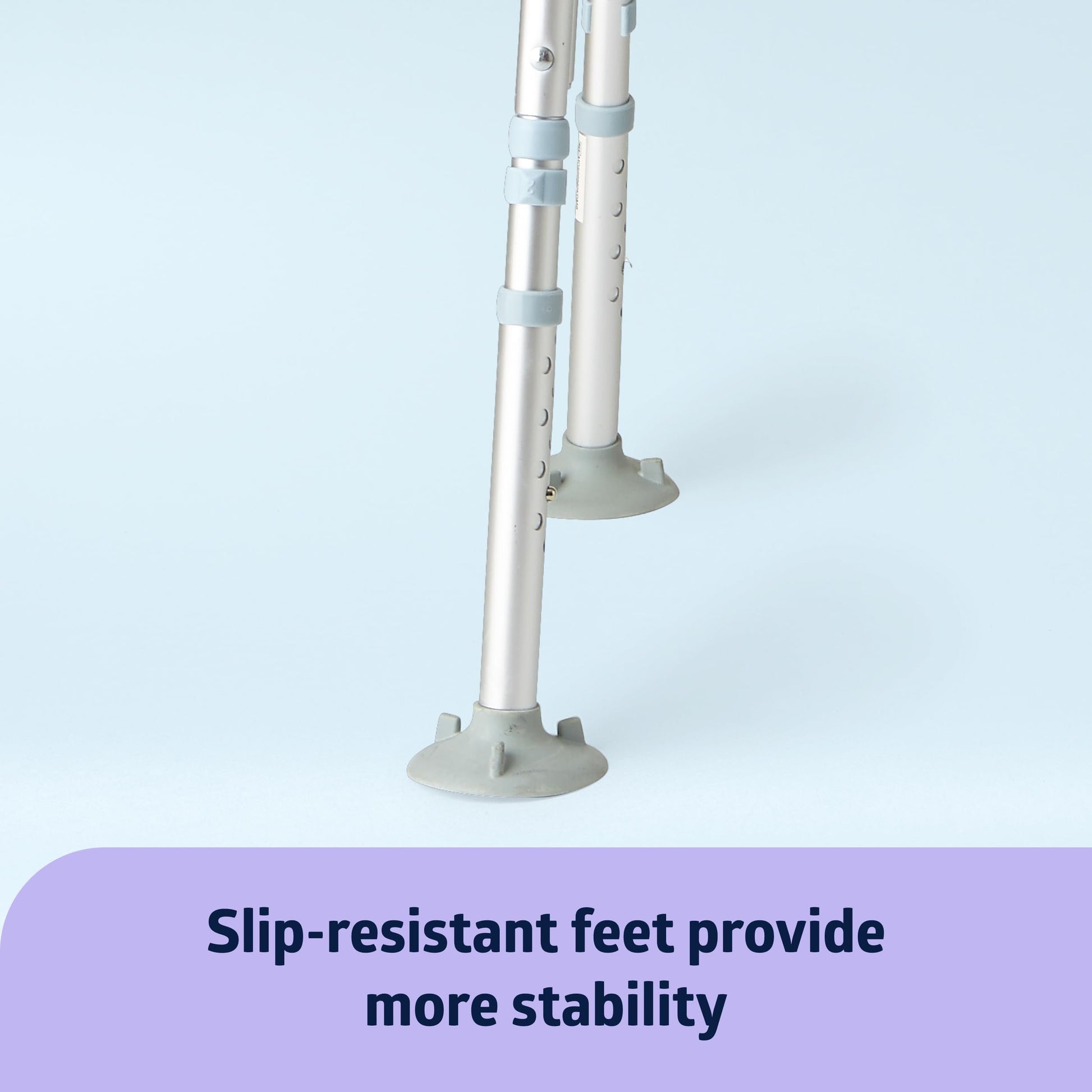SLIP-RESISTANT FEET—Rubber tips help prevent bench sliding on shower or bath floor for added stability