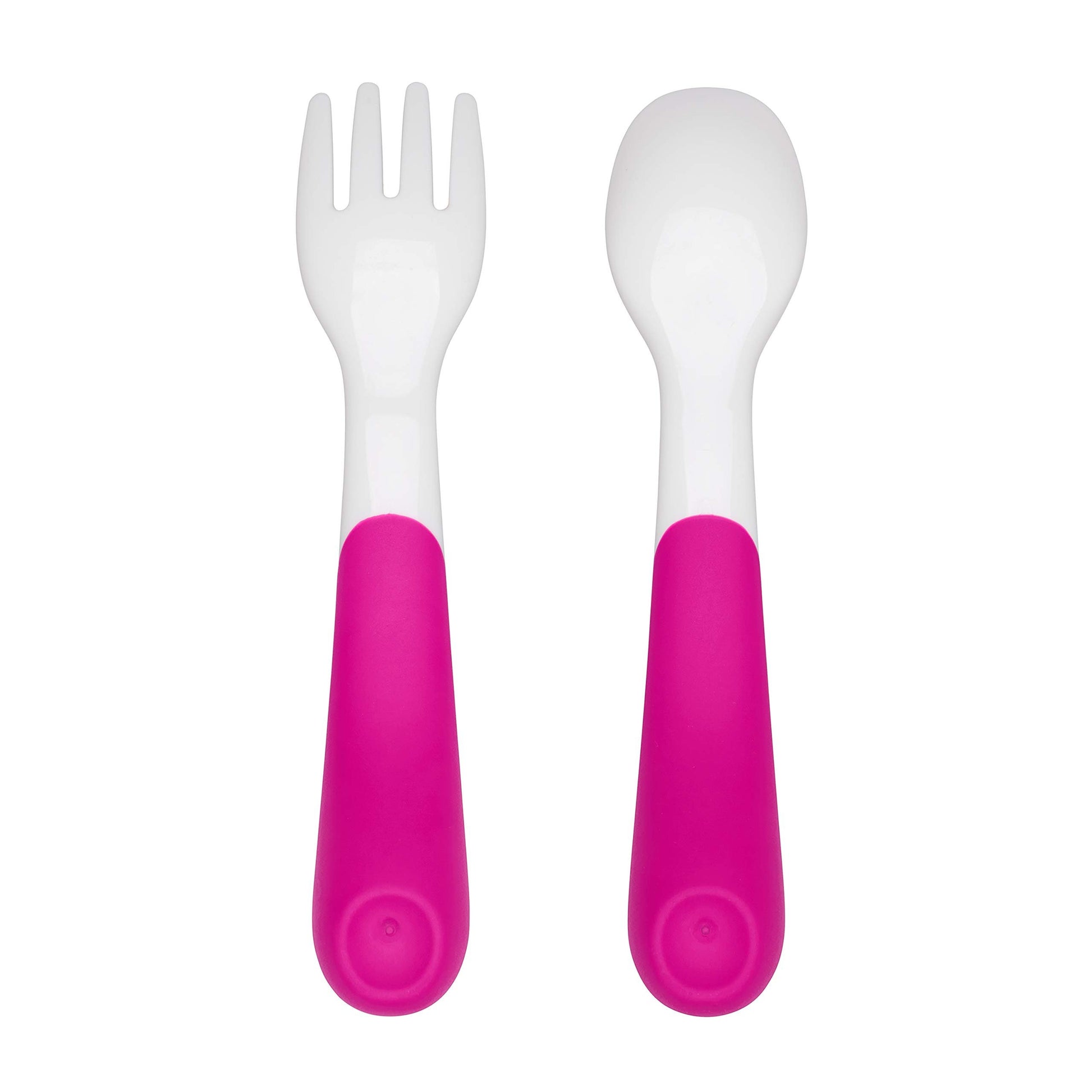 OXO Tot Plastic Fork & Spoon Set With Travel Case- Pink
