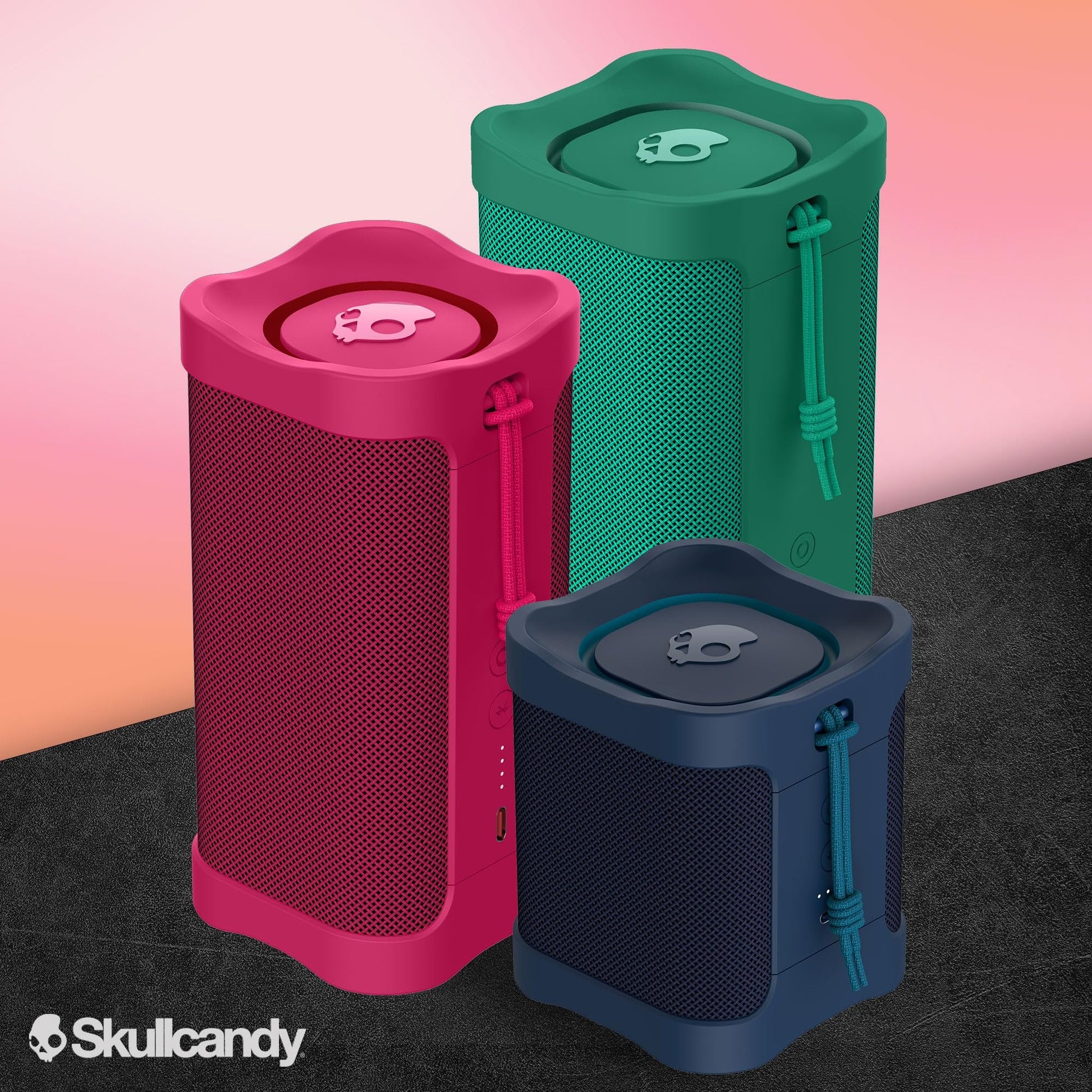 Portable & Durable- Skullcandy's mini wireless Bluetooth speaker comes with a nylon wrist wrap for easy carrying. The waterproof woven fabric mesh is engineered to allow maximum range of audio waves to pass through.