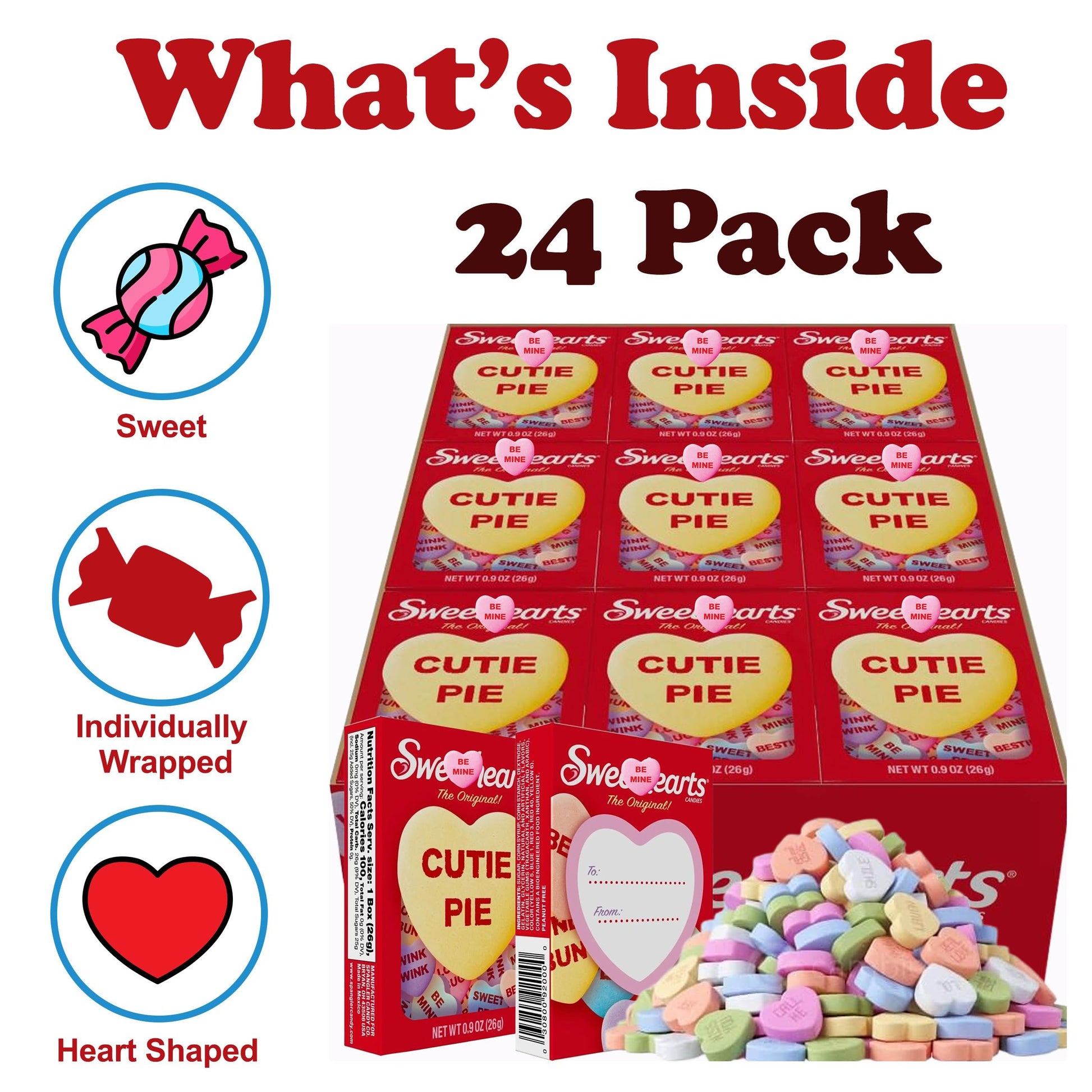 CONVENIENT AND SHAREABLE: Each pack is just 0.9 oz, the ideal size for slipping into a candy care package, lunchbox, or Valentine’s Day party favors. With 24 boxes per pack, you’ll have plenty to share with loved ones, friends, or even coworkers.