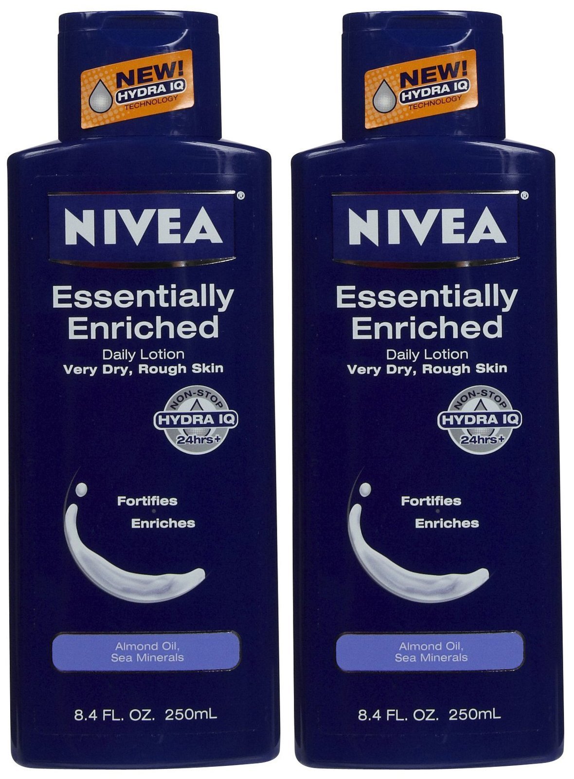 Nivea Body Daily Lotion, Essentially Enriched for Very Dry, Rough Skin, 8.4 fl oz (250 ml)Dramatically Improves Skin Condition Over TimeDaily Lotion for Very Dry Rough SkinFlip TopSea Minerals Vitamin E and Almond Oil