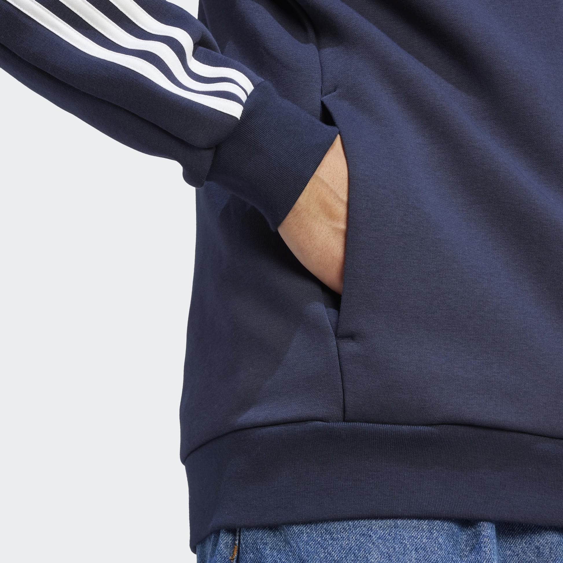 adidas Men's Essentials Fleece 3-Stripes Full-Zip, Legend Ink, X-LargeMen's hoodie offers understated style in a comfortable packageREGULAR FIT: Not tight and not loose, the perfect in-between fitDRAWCORD HOOD: Pull up the hood, cinch the cords and tune in to yourselfWE PARTNER WITH BETTER COTTON: The cotton in this product has been sourced through Better Cotton. Better Cotton is sourced via a chain of custody model called mass balance. This means that Better Cotton is not physically traceable to end productsMADE IN PART WITH RECYCLED AND RENEWABLE MATERIALS: By using recycled materials, we can reduce waste. By using renewable materials, we lessen our reliance on finite resources. At least 70% of this product is a blend of recycled and renewable materials
