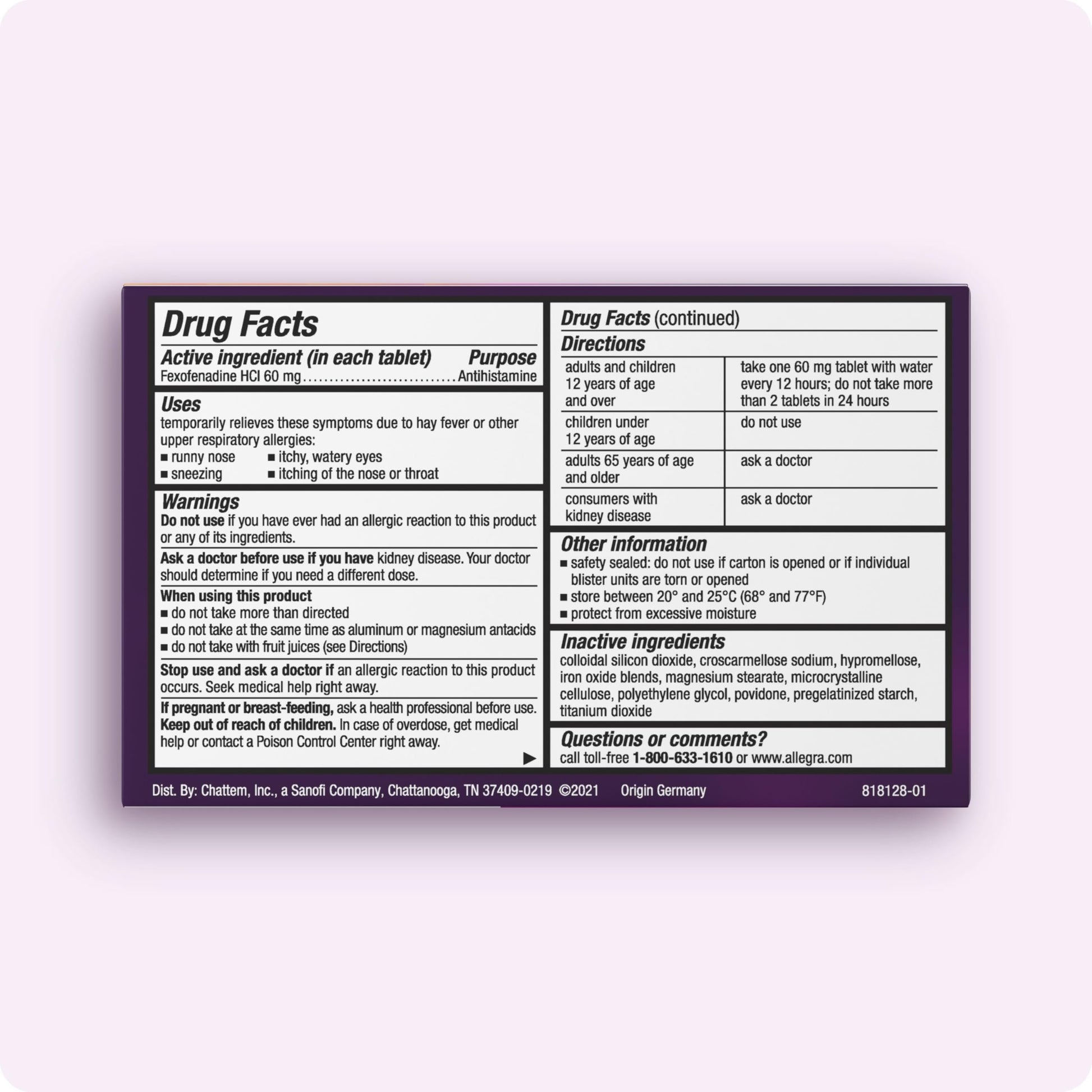 Allegra Adult Non-Drowsy Antihistamine Tablets for 12-Hour Allergy Relief, 60 mg, 24 Count