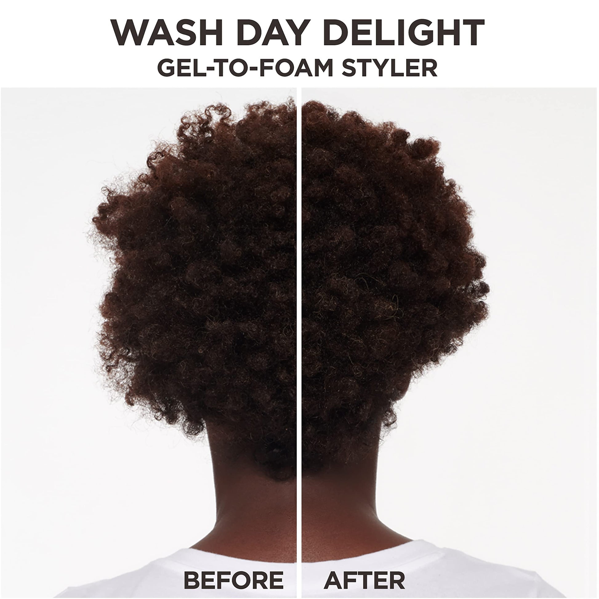 Carol's Daughter Wash Day Delight Hair Gel to Foam Mousse Styler and Hair Detangler for Curls with Aloe, Natural-looking Hold 8.5 fl ozWash Day Delight curly hair gel to foam mousse styler provides hydration, shine and definition to all curls and coilsCombines the hold and definition of a hair gel with the lightweight texture and fast drying time of a foam mousse48-hour natural looking hold without frizz, crunch, flakes, or weigh down- curls look and feel more moisturized, defined and manageableBlended with Aloe and Glycerin, it provides the slip of a foam for fast and easy spreadability throughout hairHair detangler cuts down time on wash day while providing up to 48 hours of frizz control and humidity protection