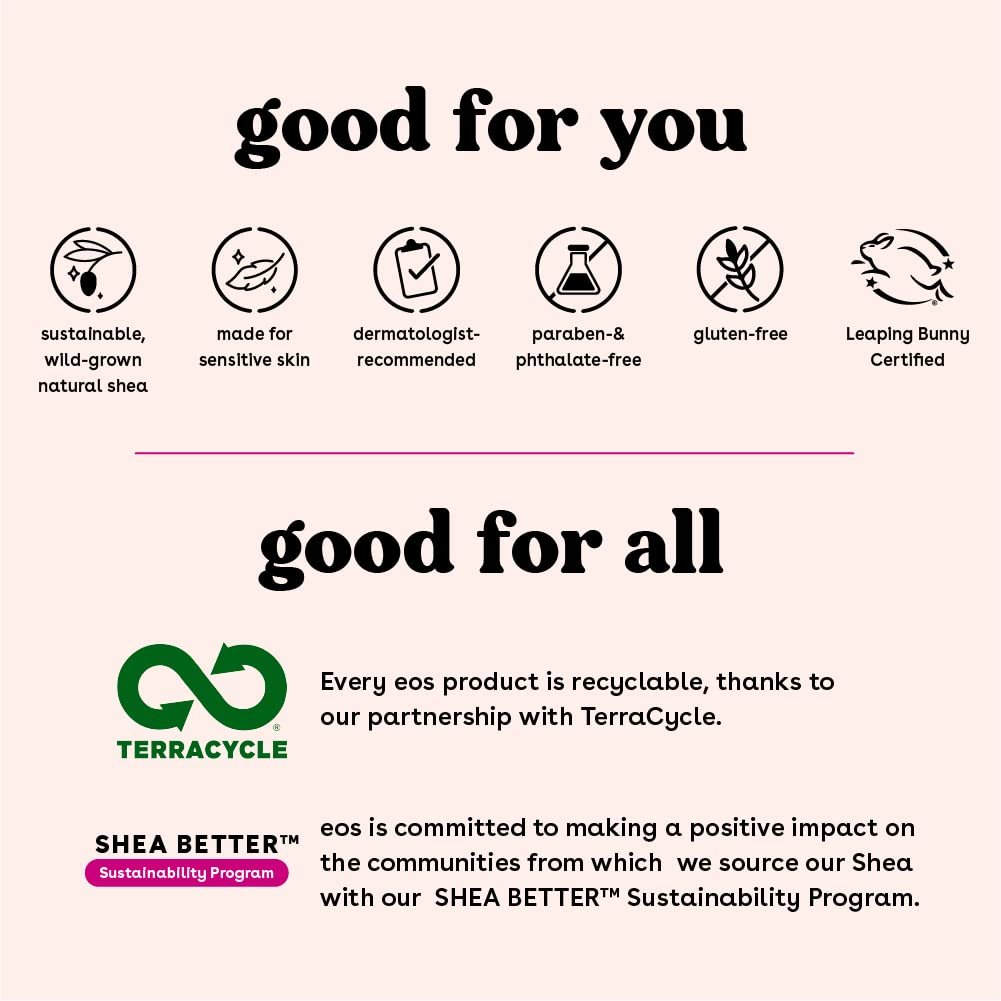 eos Sunset Sips Lip Balms- Melon Mai Tai & Wild Cherry Slushie, All-Day Moisture, Lip Care, 0.14 oz, 2-PackMELON MAI TAI & WILD CHERRY SLUSHIE: Melon Mai Tai tastes like icy honeydew melon granita, topped with lychee sparkler & fresh watermelon juice while Wild Cherry Slushie tastes like amarena cherry & beach plum sangriaNATURAL SHEA LIP BALM: Made with natural shea butter to protect and lock in moisture on your lips and the most delicious flavor that will make you want to swipe again and againALL-DAY MOISTURE: Our lip balms are packed with powerful skincare ingredients like sustainable shea butter + oil that locks-in moisture for lasting protection, nourishing coconut oil for weightless hydration, relieving jojoba oil that replenishes irritated lips, and a protective blend of antioxidantsMADE FOR SENSITIVE SKIN: Our Dermatologist-recommended lip balm is formulated for sensitive skin and hypoallergenicSUSTAINABLY-SOURCED INGREDIENTS: eos lip balms have wild grown, sustainably sourced, natural shea butter and oil to leave your lips smooth and nourished