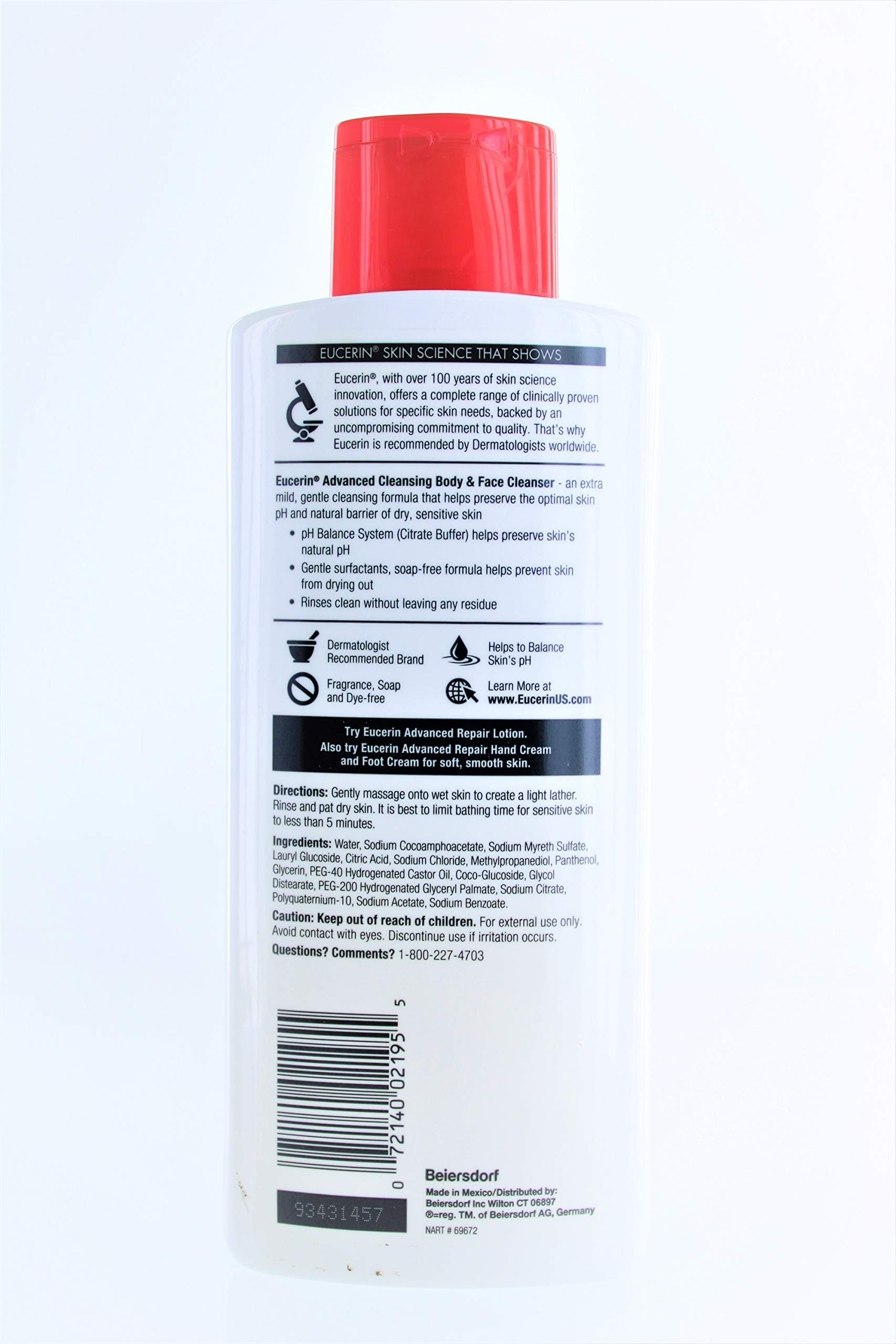 Eucerin Advanced Cleansing Body & Face Cleanser - Fragrance & Soap Free for Dry, Sensitive Skin - 16.9 fl. oz Bottle (Pack of 2)