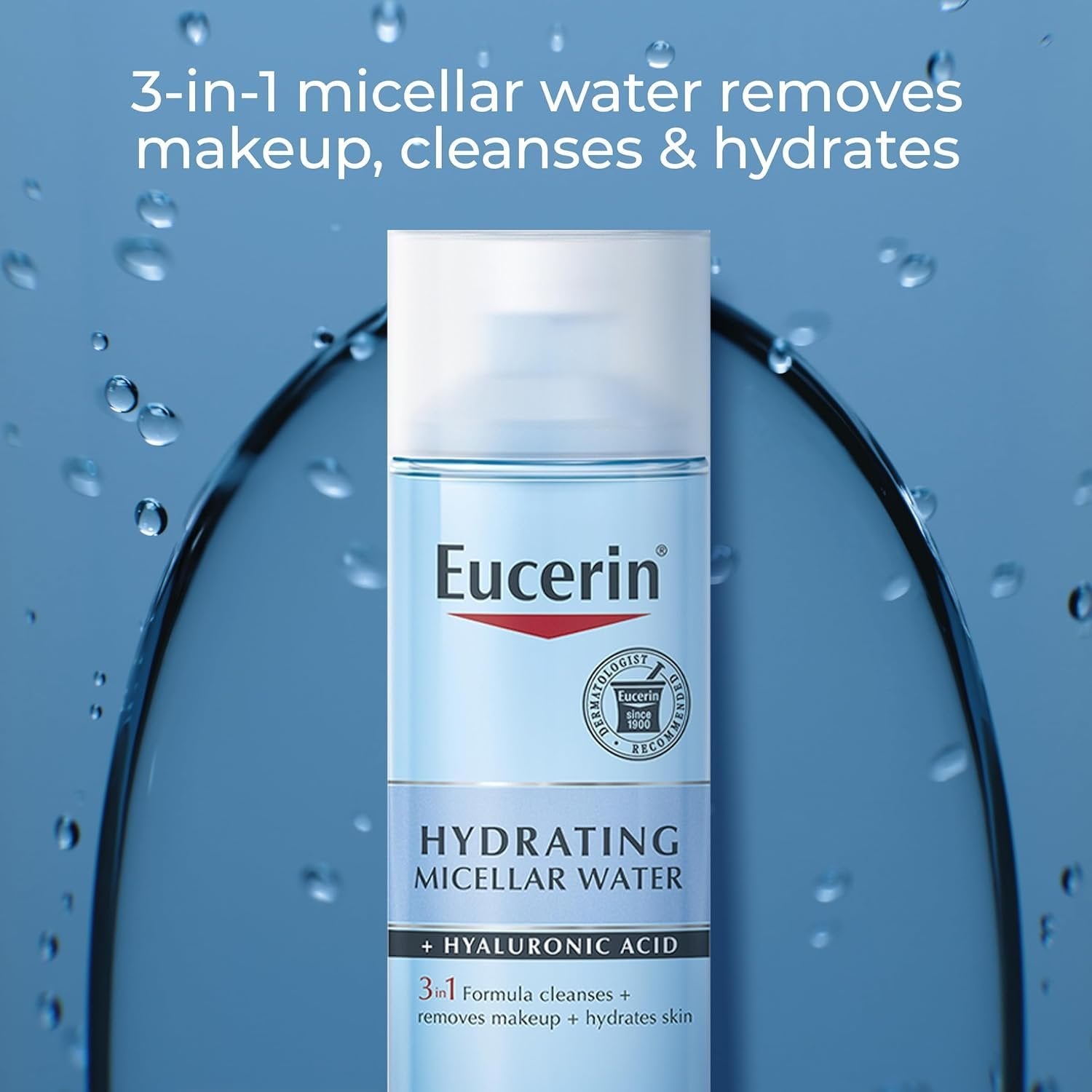 Eucerin Hydrating 3-in-1 Micellar Water, Formulated with Hyaluronic Acid, 6.8 Fl Oz Bottle