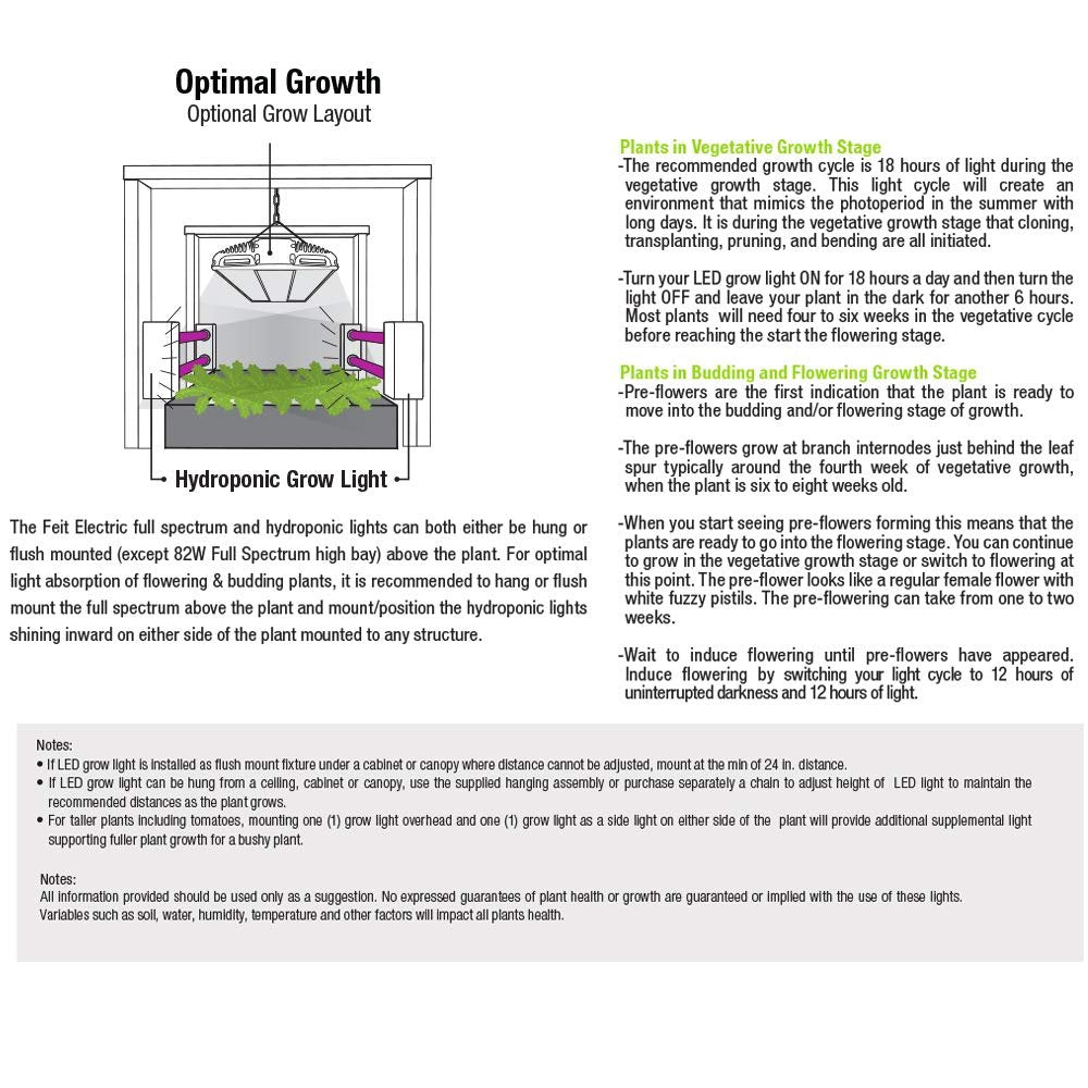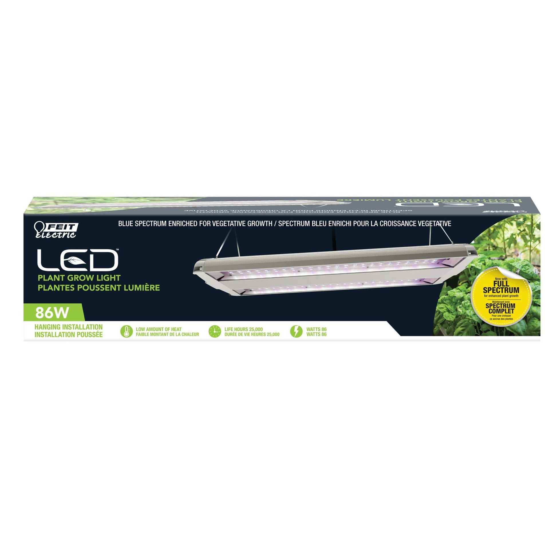 Feit Electric 80W LED Full Spectrum High Bay Grow Light (GLP14FS/HB/80W/LED), 14''GROW MORE WITH LESS - Designed to replace traditional greenhouse lighting, our LED Grow Lights deliver superior growing results using less electricity than traditional horticulture lighting. Our LED Grow Lights are ideal for greenhouse, horticulture, hydroponic or aquaponics planting and indoor gardening. The lights emit spectrum wavelengths and color for the appropriate photosynthetic response.KEY FEATURES- This LED fixture uses 86 watts of energy and emits a low thermal footprint with low energy consumption. The full spectrum has blue light that promotes tall leafy plants and the red light encourages budding, flowering and fruiting. This kit includes one 14 inch fixture with ON/OFF switch, 7 inch chain, triangle hooks and one 5 foot plug-in cord.EASY INSTALLATION - Lightweight durable polycarbonate housing makes for easy installation. Low heat emission vs. replacements, so no burning of leaves, less impact on costs to maintain temperature needed for a healthy environment for plants.LED TECHNOLOGY - The latest energy efficient LED technology uses considerably less amount of power, with an estimated energy efficiency of 80%-90%, and saves your money compared with the equivalent incandescent light. Compared over the life of the bulb, the long life LED bulbs are rated to provide up to 25, 000 hours of reliable light and require significantly less maintenance work. LED lights are much cooler than incandescent lights as 95% of the energy in LEDs is converted into light and onlyINNOVATOR IN ENERGY EFFICIENT LIGHTING - Founded and headquartered in California, Feit Electric is celebrating 40 years as a leading global lighting manufacturer. From outdoor string lights to night lights, Feit Electric offers its customers a full portfolio of reliable lighting products including home décor lighting collections, light fixtures, smart and feature rich high-performance lighting solutions as well as a full line of general household, specialty light bulbs in all shapes, sizes and c