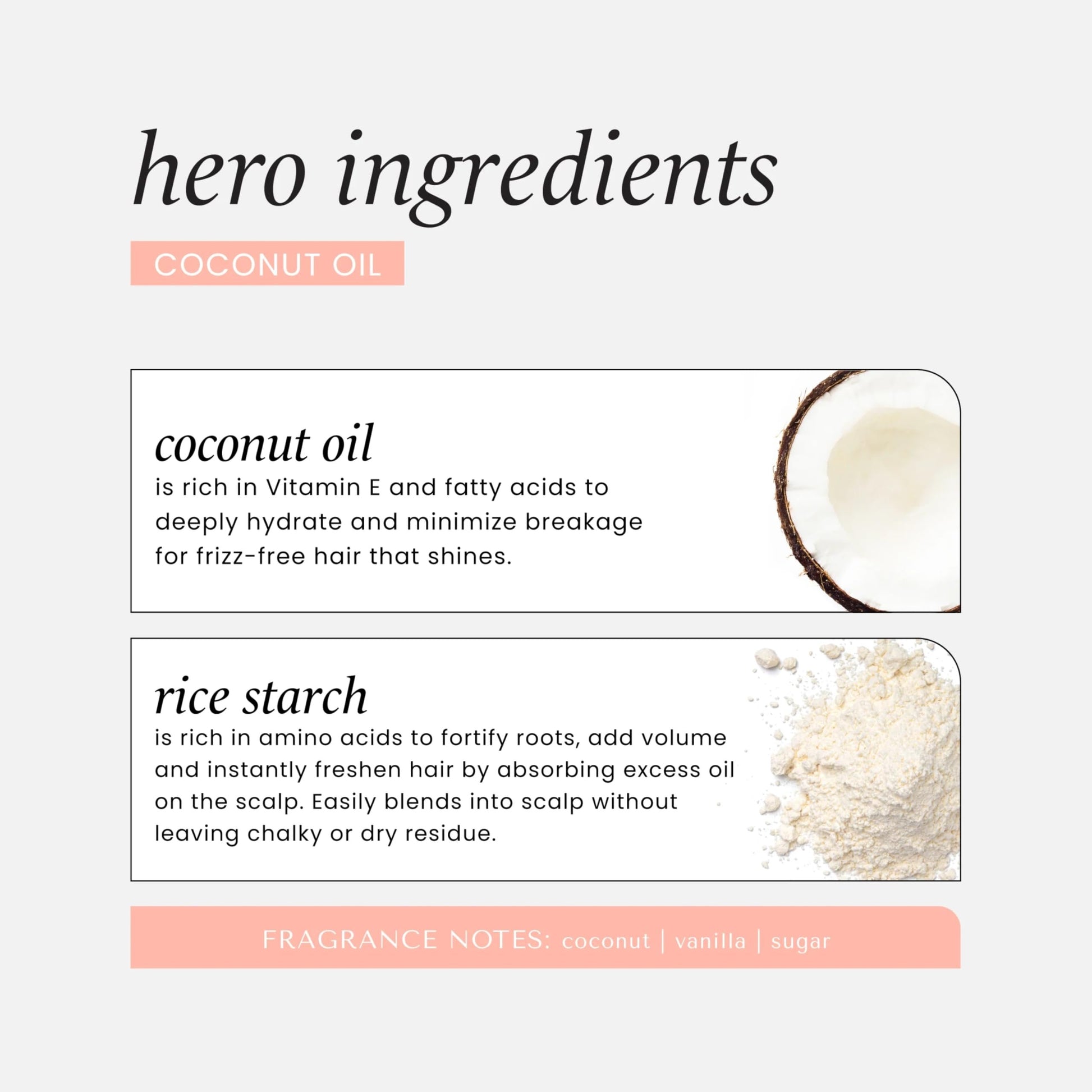 Skip a wash or extend the life of your style with this lightweight, coconut infused formula
