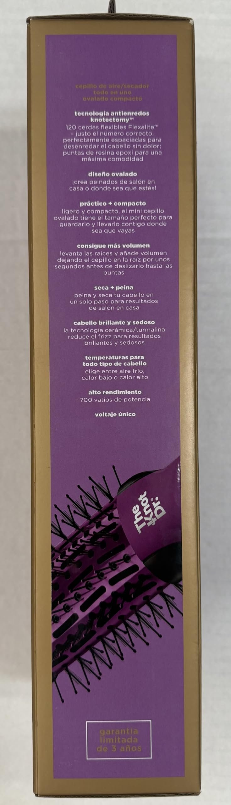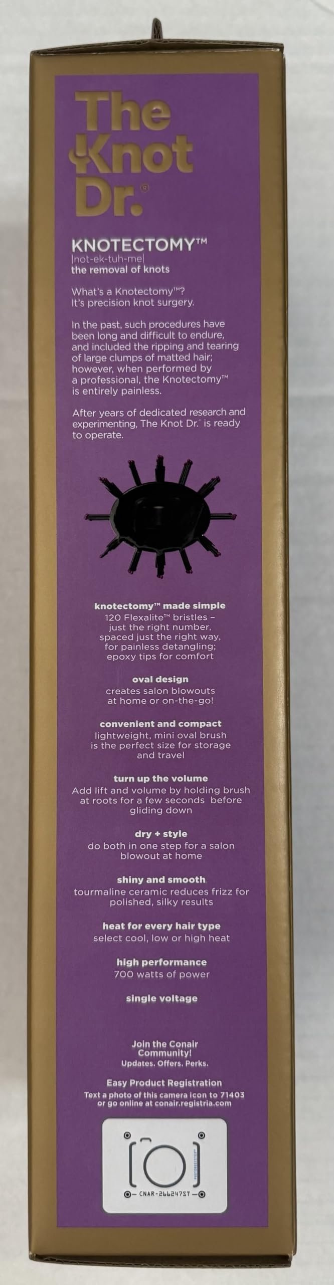 Transform your hair styling routine with the Infiniti Pro by Conair The Knot Dr. All-In-One Oval Hair Dryer Brush in stunning Amethyst Purple. This innovative styling tool combines the power of a 700-watt dryer with the precision of a detangling brush, featuring 120 Flexalite bristles perfectly spaced for painless detangling. The oval design creates professional-looking blowouts whether you're at home or traveling, while the compact size makes it ideal for storage and portability. The tourmaline ceramic technology helps reduce frizz for silky-smooth results, and multiple heat settings accommodate all hair types. Perfect for achieving volume at the roots and styled ends in one simple step, this limited edition tool delivers salon-quality results. The lightweight design and comfortable grip make it easy to maneuver, while the powerful motor ensures quick drying and styling. Create stunning blowouts and smooth, polished looks with this versatile styling essential.