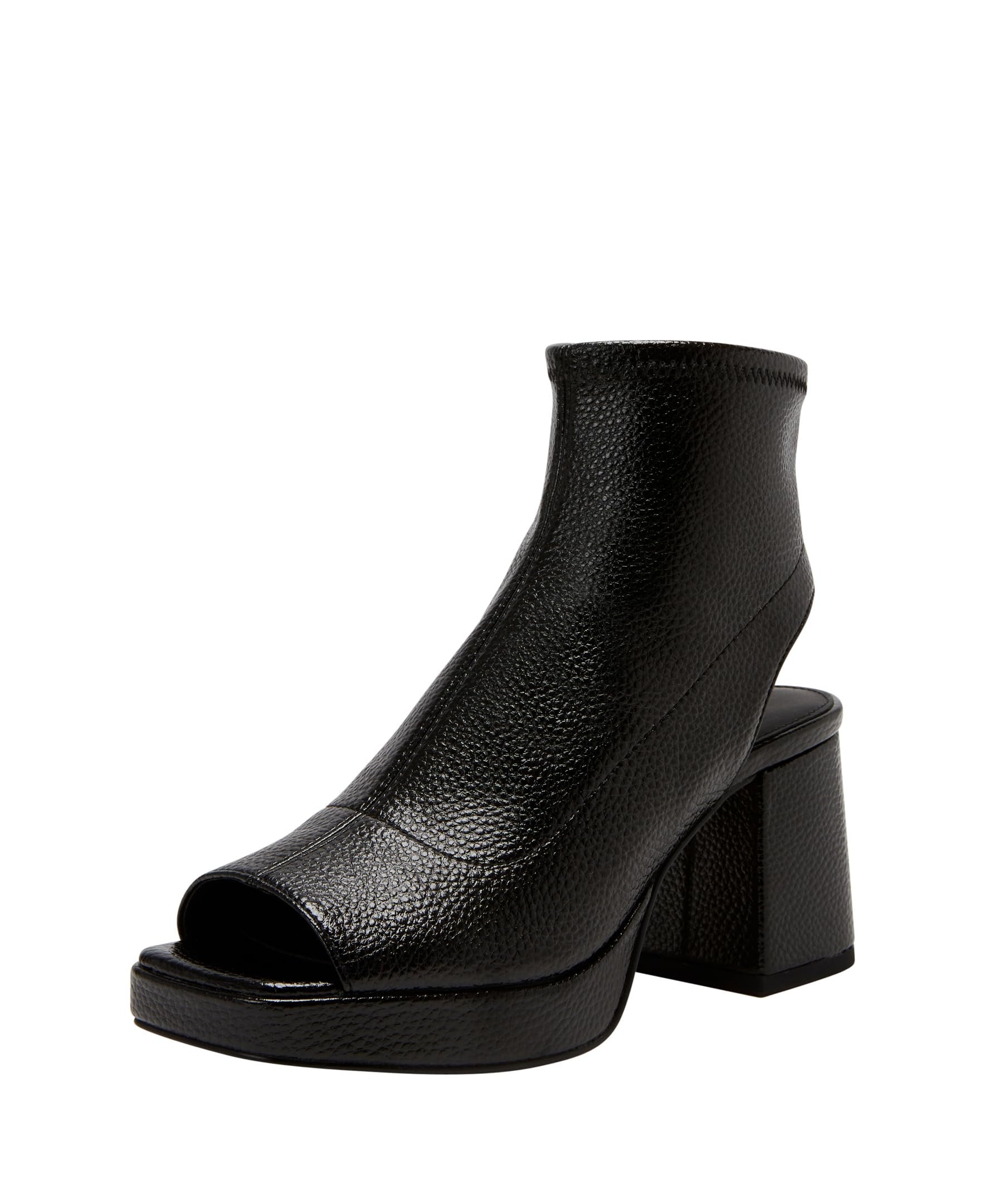 Katy Perry Women's The Surrprise Shootie Fashion Boot, Black, 8FASHION-FORWARD DESIGN WITH OPEN SQUARED-OFF TOE - The standout feature of The Surrprise Shootie is its open squared-off toe design, which adds a fashion-forward and modern touch to the overall look. The squared-off toe shape showcases Katy Perry's innovative approach to footwear, making these platform shoes a statement piece for your wardrobe.CHUNKY BLOCK HEEL PLATFORM FOR TRENDY APPEAL - Designed with a chunky block heel platform, The Surrprise Shootie offers trendy appeal and striking elevation. The combination of the block heel and platform adds a bold and stylish element, enhancing your overall style and boosting confidence.COMFORTABLE TEXTILE LINING - The Surprise Shootie has a textile lining, ensuring a comfortable and cozy feel against your feet. The soft lining provides a comfortable fit, making these platforms suitable for extended wear.PRACTICAL INSIDE ZIPPER - Designed with an inside zipper, The Surrprise Shootie ensures easy on and off. The zipper closure provides practicality and convenience, making these platform sandals effortless and perfect for your busy lifestyle.2.8 INCH HEEL HEIGHT AND .8 INCH PLATFORM HEIGHT - With a 2.8-inch heel height and a .8-inch platform height, The Surrprise Shootie offers versatile elegance that complements various outfits. The heel and platform heights balance style and comfort, making these platform shoes suitable for day-to-night wear.