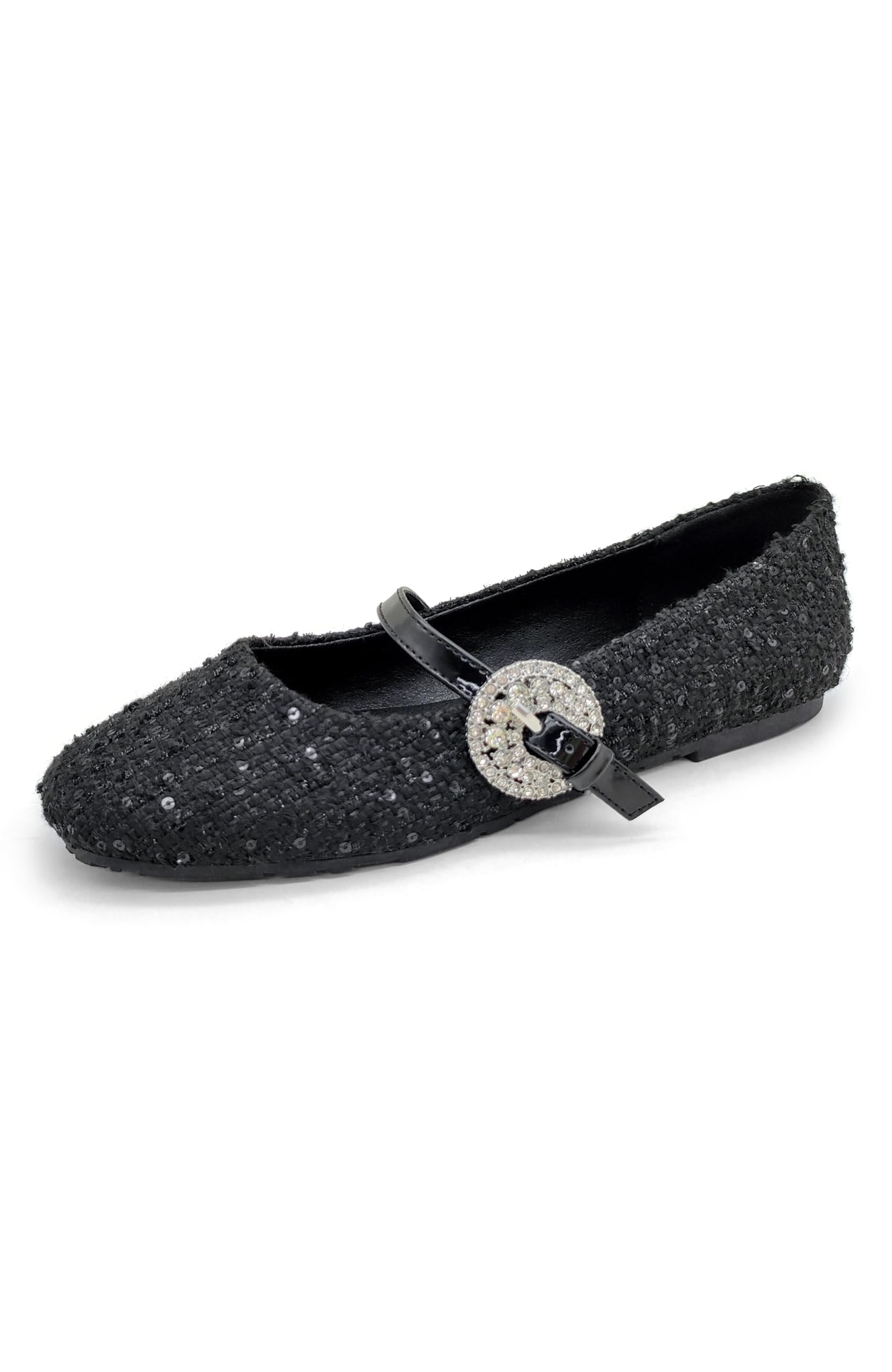 Kenneth Cole Reaction Women's Women's Elwood Ballet Flat, Black Fabric, 5.5Mary Jane FlatJewel buckle detail.Comfort InsoleFlexible outsole.