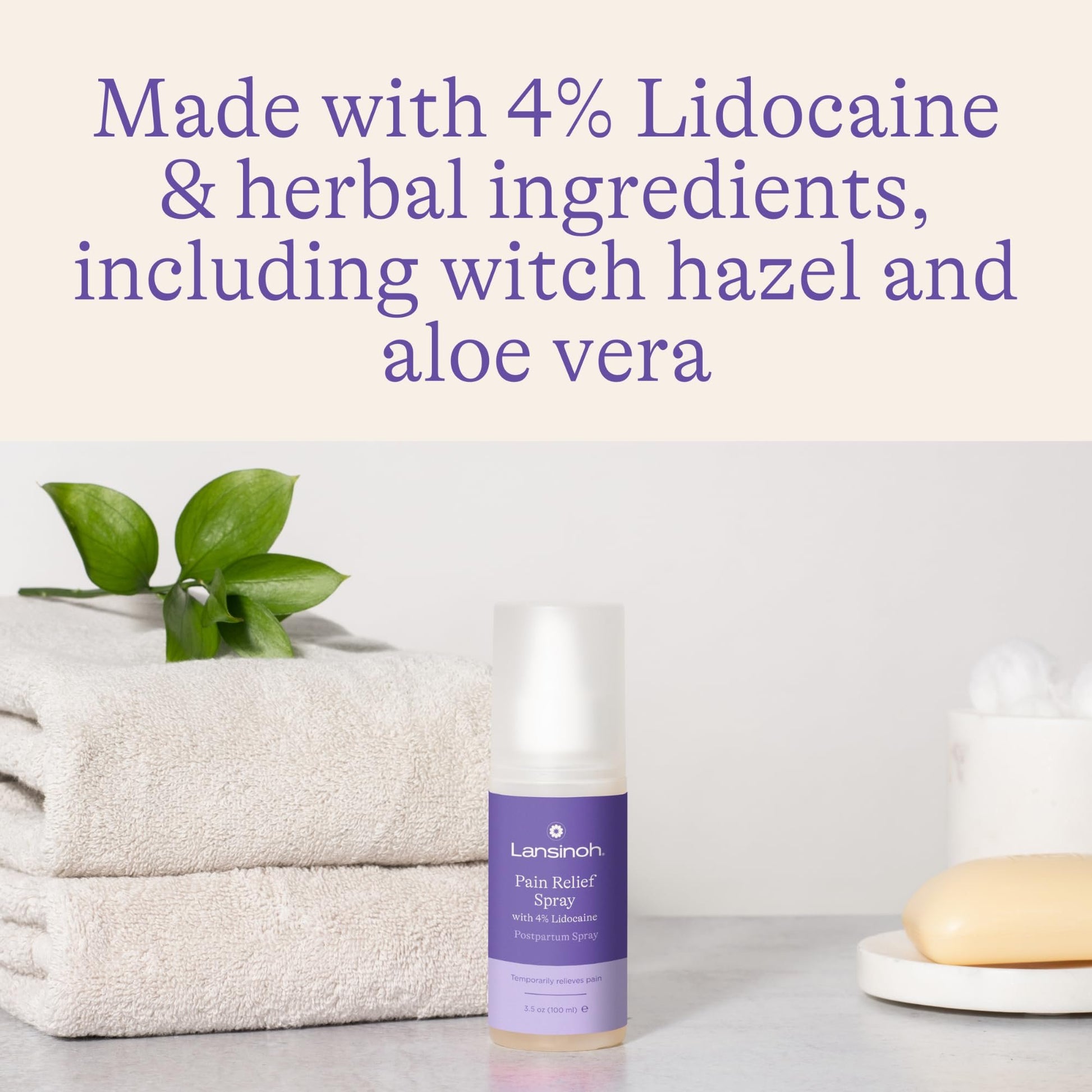 Lansinoh 4% Lidocaine Perineal Spray, Pain Relief for Postpartum Care, 3.5 Ounces