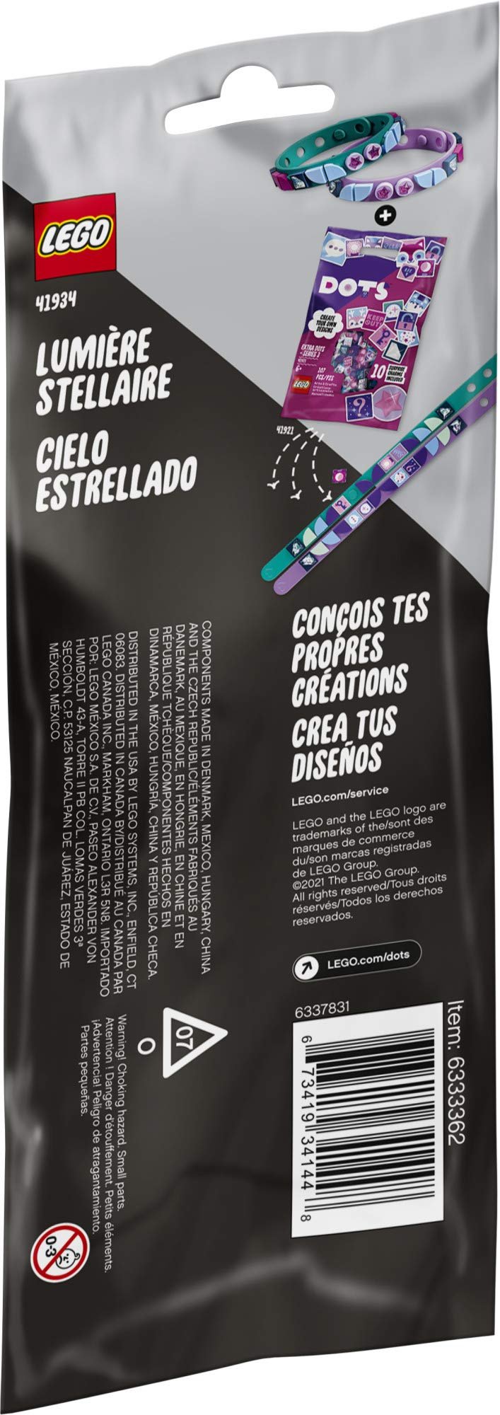 LEGO DOTS Starlight Bracelets 41934 DIY Craft Bracelet Kit; Fun and Creative Addition to Expand Imaginative Play, New 2021 (34 Pieces)Surprise a creatively inclined child with an out-of-this-world LEGO DOTS Starlight Bracelets (41934) toy set and start them off on a fun journey of endless DIY design possibilitiesKids can stretch their self-expression skills as they decorate the bracelets, which feature 2 slim, adjustable bands and 32 tiles; Play starts right out of the bagThis kit is great on its own as a quick, creative playset; Kids can also use tiles from the LEGO DOTS Extra DOTS – Series 3 (41921) bag to build on their designs with cool new ideasAny arts-and-crafts fan will love this creative set; The sturdy bracelets, colorful tiles and special decorated tiles will make a fun gift or a little extra treat for kids aged 6 and upWith the bracelets each measuring over 7 in. (20 cm) long, this kit is perfect for budding designers to practice their creations and then wear their favorite version