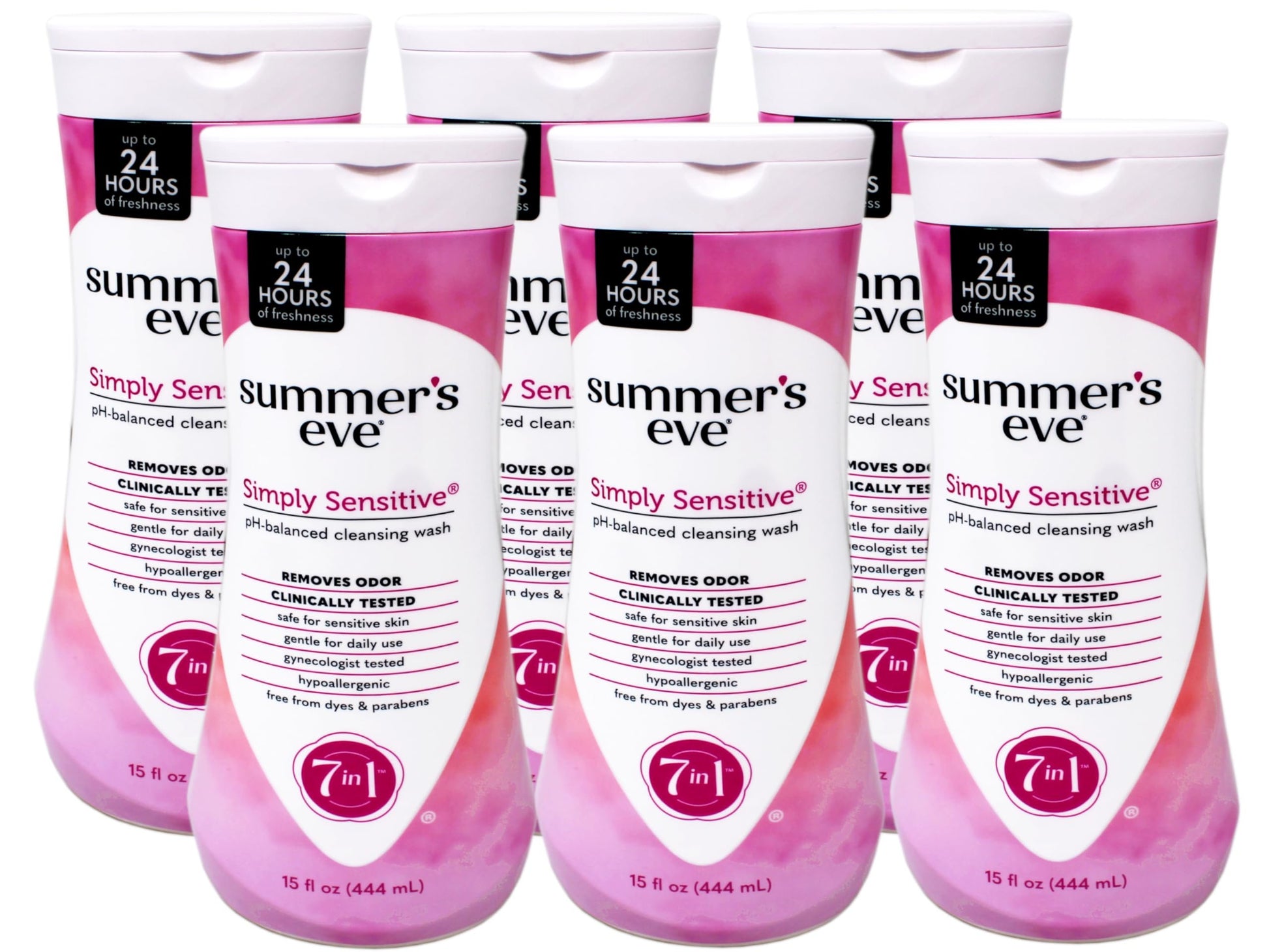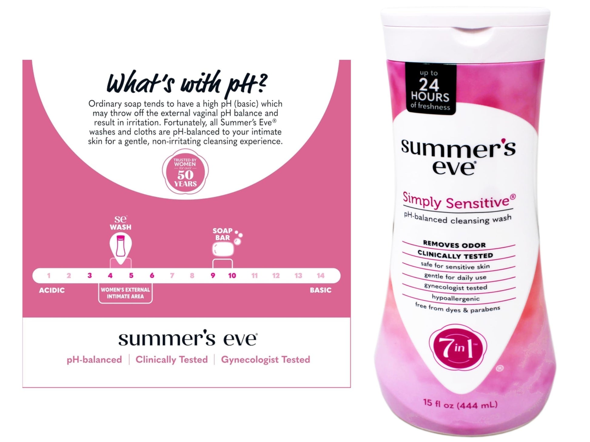 Find your fresh with Summer's Eve Feminine Cleansing Wash. Summer's Eve Feminine Cleansing Wash is hypoallergenic, and safe and gentle enough to use every day. Free from dyes and parabens, Summer's Eve Feminine Cleansing Wash is created for your most intimate areas to gently cleanse away the bacteria that can cause odor. Made for sensitive skin, Summer's Eve Feminine Cleansing Wash won't dry like soap, and it's balanced to a woman's natural pH range. All Summer's Eve products - along with every unique scent - are gynecologist-tested to ensure they are safe, even for sensitive skin. Simply Sensitive scent is subtly floral-fragranced for a barely there impression. Summer's Eve Feminine Cleansing Wash and Cleansing Cloths are available in a variety of different fragrances and sizes.