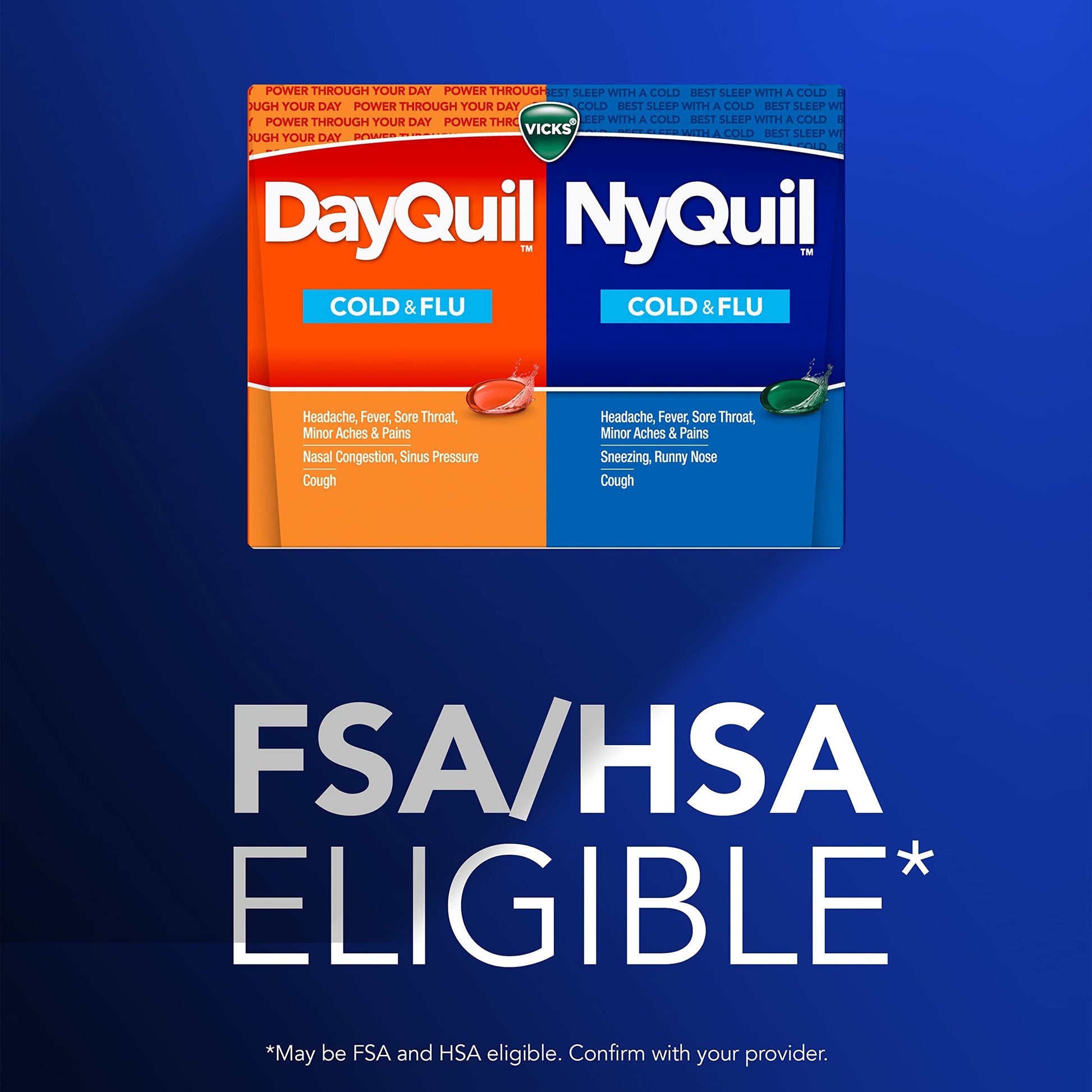 Vicks DayQuil and NyQuil Combo Pack, Cold & Flu Medicine, Powerful Multi-Symptom Daytime and Nighttime Relief for Headache, Fever, Sore Throat, Cough, 24 Count, 16 DayQuil, 8 NyQuil Liquicaps