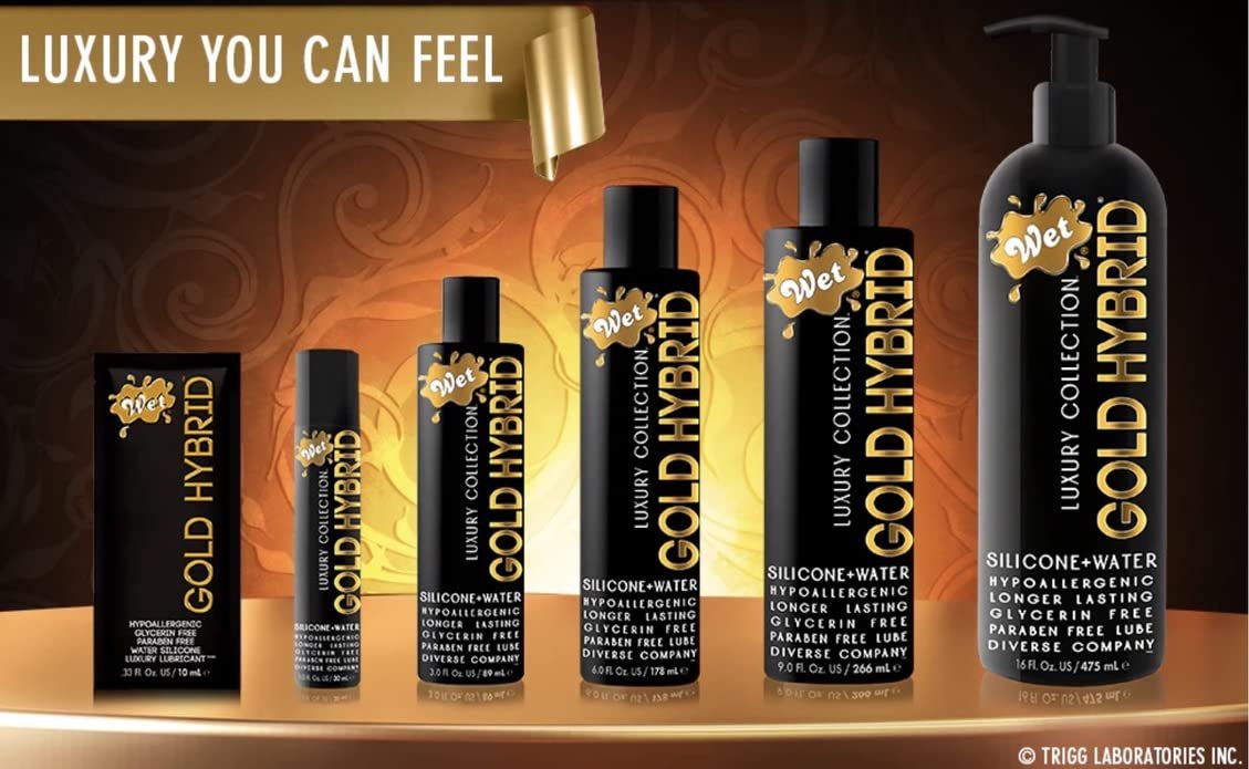 Discover the perfect fusion of pleasure with Wet Gold Hybrid Personal Lubricant, where the best of silicone and water-based formulas come together for a truly luxurious experience. Love the effortless cleanup of water-based lube but crave the silky, long-lasting glide of silicone? With Wet Gold Hybrid, you don’t have to choose—it’s the best of both worlds. This premium hybrid formula delivers a smooth, never-sticky texture that glides effortlessly, keeping up with you every step of the way. Designed to enhance every moment, Wet Gold Hybrid is odorless, glycerin-free, paraben-free, and latex-compatible, making it a safe and gentle choice for all your intimate adventures. Perfect for couples and solo use, this unisex gel is crafted to leave your skin soft, moisturized, and ready for anything. Whether you're spicing up your routine or diving into something new, Wet Gold Hybrid makes it easy to slip into bliss. Say goodbye to interruptions and hello to a smooth, uninterrupted glide that lasts.WATER-SILICONE HYBRID FORMULA: Get the best of both worlds with our unique hybrid blend, combining the ease of water based lubes with the silky, long lasting glide of silicone. Odorless, non-sticky, and designed for men, women, and couples, this formula is the perfect match for unforgettable moments.SILKY-SMOOTH GLIDE: Enjoy a luxurious, uninterrupted glide that outlasts the competition. This formula keeps things effortlessly smooth, enhancing every intimate moment with ease and comfort.COMPATIBLE WHERE IT COUNTS: Safe to use with latex condoms, silicone-free toys, and even in the shower or bath—this lube is ready to go wherever the mood takes you.PREMIUM INGREDIENTS, EASY CLEANUP: Made with only the best ingredients, this lube is glycerin-free, paraben-free, and perfect for sensitive skin. Plus, cleanup is a breeze—no sticky residue, just silky smooth satisfaction.MADE IN THE USA: Proudly crafted by Trigg Laboratories in a cGMP-compliant facility, Wet Gold Hybrid is backed by over 35 years of trust and quality. While the bottle may have a fresh new look, the premium ingredients inside are as dependable as ever.
